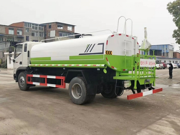 (2)配備專用灑水泵,前噴后灑、側噴、后工作平臺及灑水高壓炮。灑水泵自吸高度為7米左右,整車灑水寬度14米左右,后工作平臺水炮可調節(直沖狀、大雨、中雨、小雨、毛毛雨),有效射程28-32米。整車帶消防接頭、自流閥及自吸功能。附送2根3米水管,1個爬梯,兩側及后保險杠。