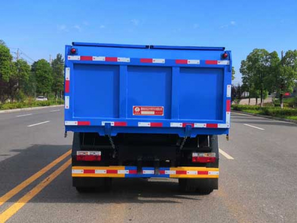 隨底盤選裝駕駛室.選用3800mm軸距.自卸方式:后卸式.側后防護采用Q235材質焊接連接,后部防護斷面尺寸(mm):50×120,后部防護離地高度(mm):450.ABS型號:ABS/ASR-24V-4S/4M,廠家:襄陽東風隆誠機械有限責任公司.裝備有液壓舉伸機構,能將車箱傾斜一定角度自卸垃圾.發動機型號/油耗值(L/100km)對應關系:D4.0NS6B170/20.5,D4.0NS6B185/20.4,YCS04190-68/20.3,ZD30D16-6N/20.3,D25TCIF1/20.3,D30TCIF1/20.2,D40TCIF1/20.3,D45TCIF1/20.2,NV30-C6G/20.6,NV30-C6C/20.3,NV30-C6D/20.3,CY4SK161/20.4,CY4SK261/20.1,CY4SK361/20.4,YCY30165-60/21.3.