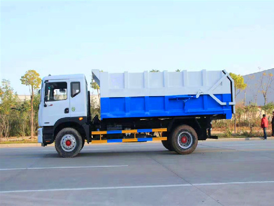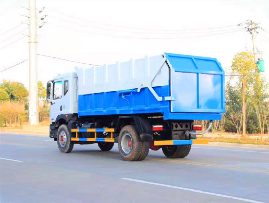 全密封箱體,頂部不可開啟,箱尾采用全液壓缸壓緊,尾部帶3mm厚橡膠密封條,污水不會滴漏,有效防止二次污染問題,箱體采用雙缸液壓自卸功能。