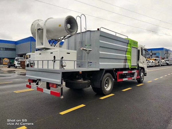 罐體容積:12方,罐體材質(zhì):碳鋼, 板材厚度3-5mm。配大功率灑水泵,水位量管一根,抽水管兩根,罐體內(nèi)帶有防浪隔板,取力器,傳動軸,工作平臺,管道系統(tǒng)、四位三通球閥、直通球閥、過濾網(wǎng)、出水口,前沖、后灑、側(cè)噴,配備50-100米全自動噴霧炮,水平噴霧距離:50-100米,**方式:手動/無線遙控器,柴油發(fā)電機組。
