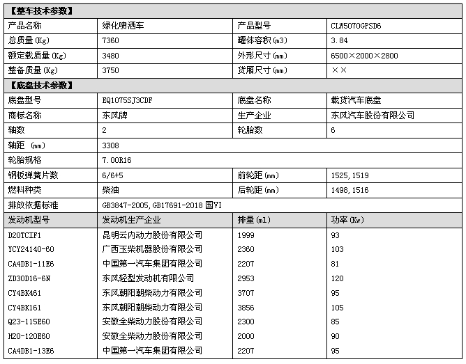 采用東風公司原裝底盤,國六排放標準,云內126馬力,萬里揚5檔變速箱,1.8T前橋,3.5T后橋,7.00R16鋼絲胎,188雙層直通大梁,ABS,電動門窗,中控鎖。