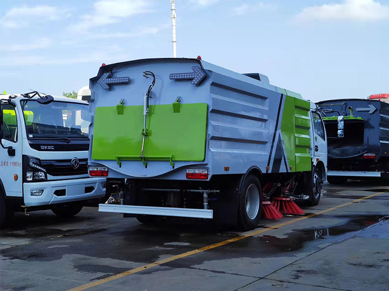 采用吸掃混合的方式收集垃圾,濕式除塵、電液控制,液壓傾翻卸料的作業方式對路面進行清掃作業。